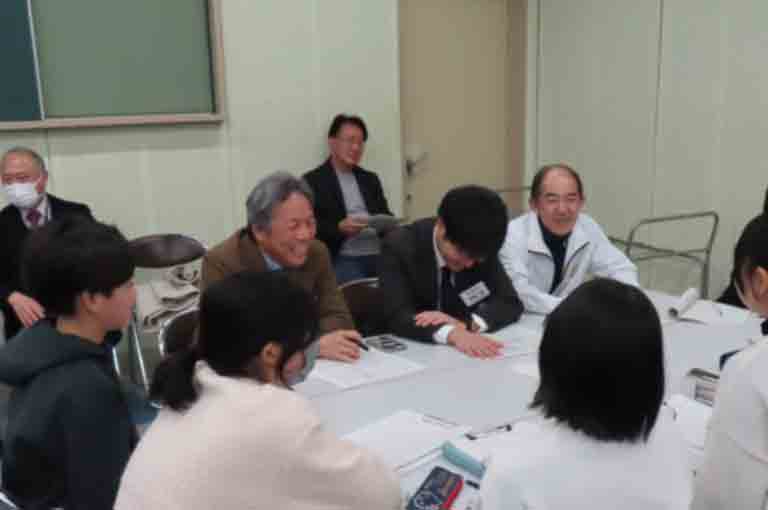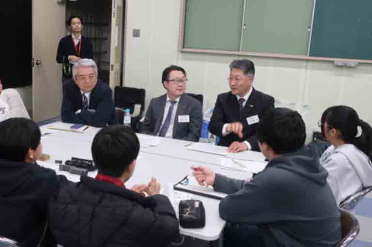 冒頭で本弘会長があいさつし、会員たちは人脈や専門的なスキルを持っており「1つ尋ねると、何倍もの答えが返ってきます」と質問を歓迎。同時に「私たちも中学生のみなさんの話を聞いて勉強したい」と意欲をみせました。
