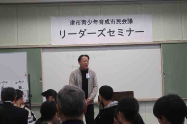 中学生リーダーズセミナー(津市青少年育成市民会議主催)が1月17、18の両日、津市神戸の市青少年野外活動センターで開かれました。17日夕のグループ討議には、津RCから本弘会長をはじめ17人が参加。津市内の14中学校から選ばれた42人と、将来の夢や進路について1時間半近くにわたり対談しました。